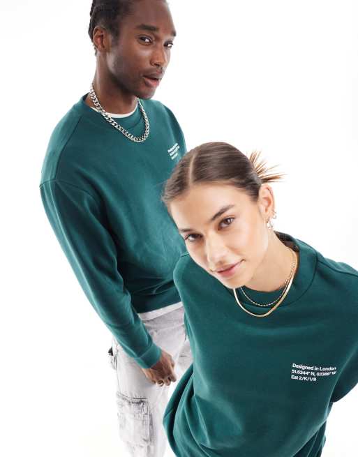 COLLUSION Unisex – Pullover in Grün mit Logo