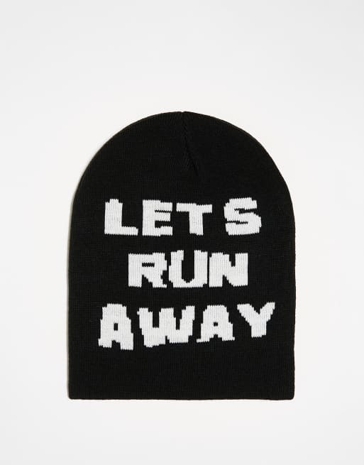 COLLUSION Unisex – Skater-Mütze aus Strick in Schwarz mit Grafikmuster