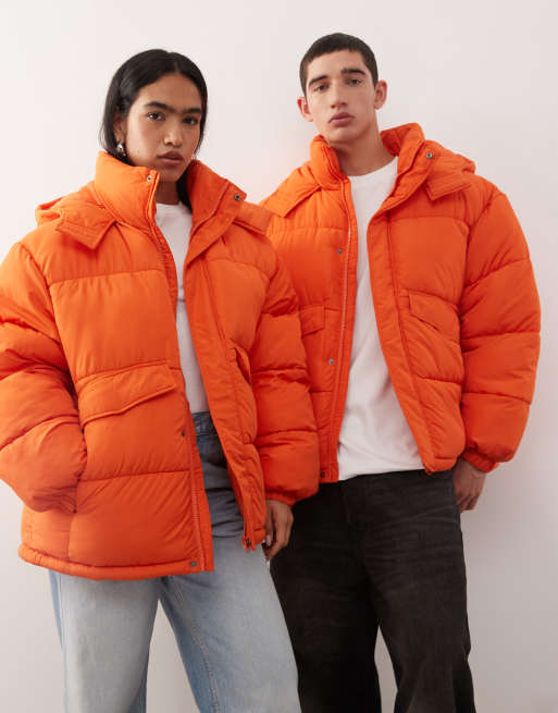 COLLUSION Unisex – Steppjacke in Orange mit Kapuze