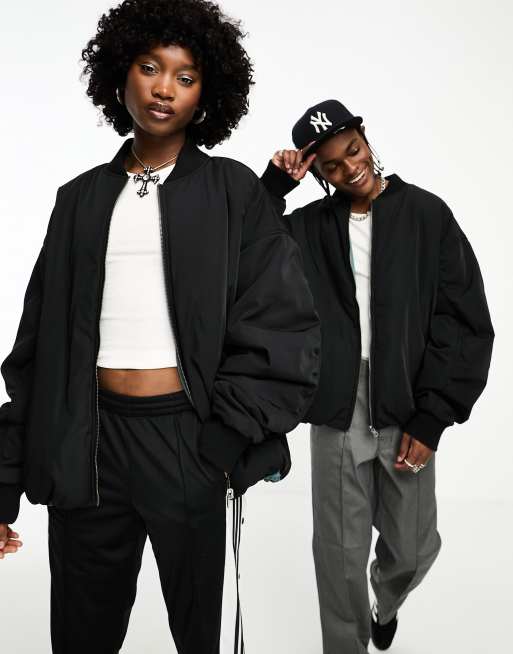COLLUSION Unisex – Ultimate – Wendbare Oversize-Bomberjacke in Schwarz und Tonic-Grau