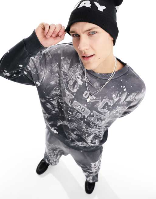 COLLUSION – Varsity – Sweatshirt in Blau mit handgemalten Farbspritzern, Kombiteil