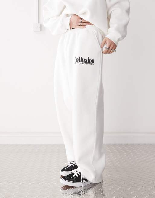 COLLUSION – Weit geschnittene Jogginghose in Ecru mit Print, Kombiteil