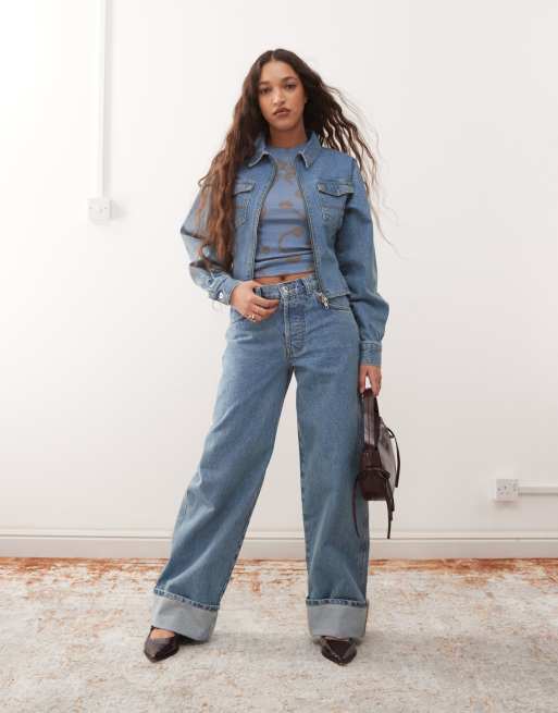 COLLUSION – Weite, umgeschlagene Jeans in mittelblauer Waschung, Kombiteil