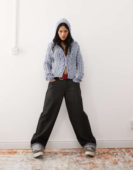 COLLUSION – x001 – Sehr weite Jeans in beschichtetem Schwarz, Kombiteil