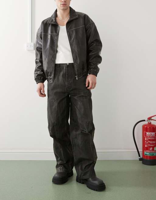 COLLUSION – X002 – Beschichtete weite Jeans in verwaschenem Schwarz