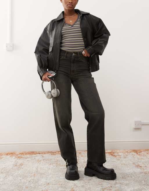 COLLUSION – x009 – Locker geschnittene Dad-Jeans in schwarzer Waschung mit mittelhohem Bund