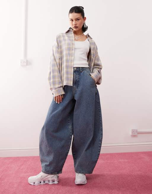 COLLUSION – XL – Ballonjeans in verwaschenem Blau mit Riegel am Bund