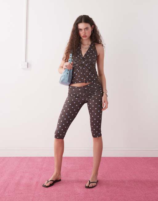 COLLUSION – Yoga-Set in Braun mit Polka Dots