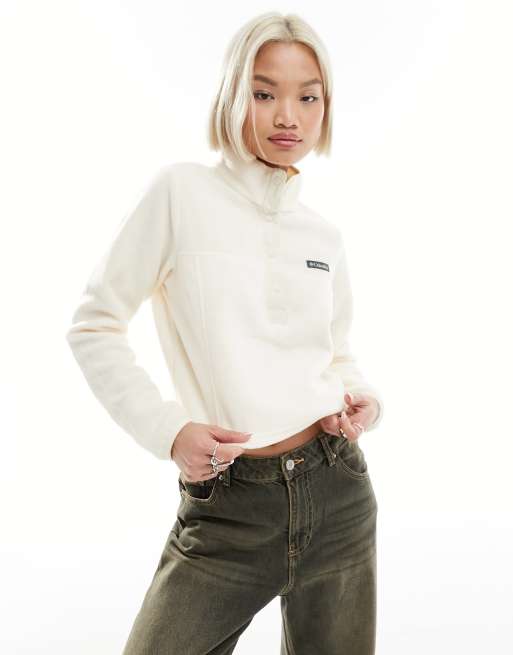 Columbia – Benton Springs – Kurz geschnittenes Fleece-Oberteil in Cremeweiß mit Halbreißverschluss, exklusiv bei ASOS