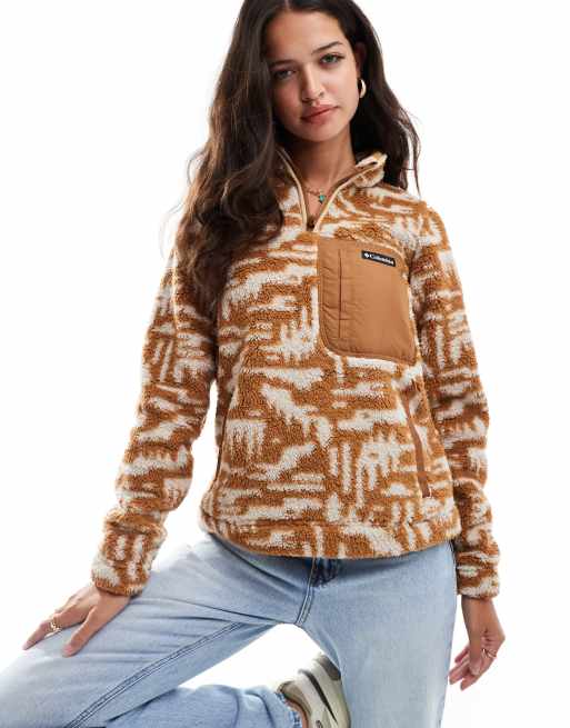 Columbia – West Bend II – Fleece-Oberteil in Kamelbraun mit farblich abgestimmtem Highland-Muster und kurzem Reißverschluss