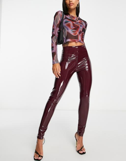 Commando – Perfect Control – Leggings aus Kunstleder in dunkelroter Lackoptik, Kombiteil