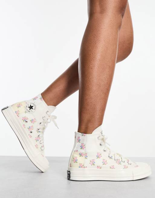 Converse – Chuck 70 Hi – Sneaker in Wollweiß mit Blumenstickerei