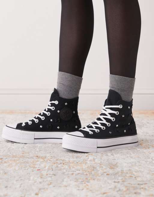 Converse – Chuck Taylor All Star Lift Hi – Sneaker in Schwarz mit Plateausohle, Schleifen und Nieten