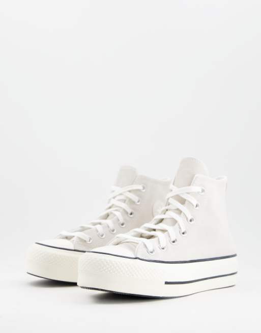 Converse – Chuck Taylor – Gefütterte Sneaker aus Wildleder in gebrochenem Weiß mit Plateausohle