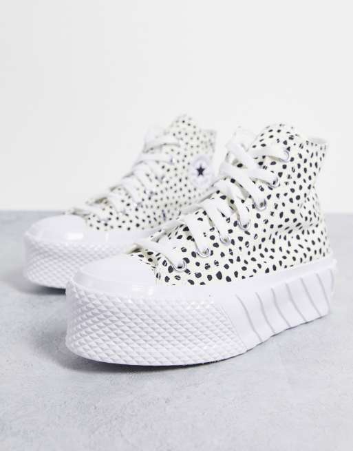 Converse – Chuck Taylor Hi – Knöchelhohe, gepunktete Sneaker mit doppelter Plateausohle
