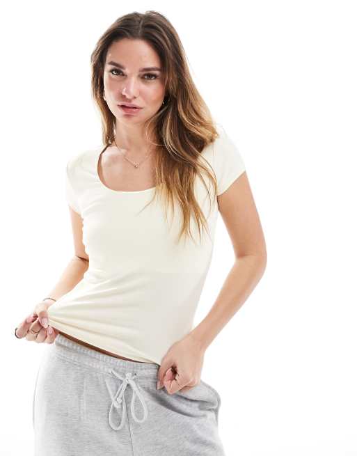 Cotton On – Byron – Kurzärmliges Oberteil mit eckigem Ausschnitt in Gelb