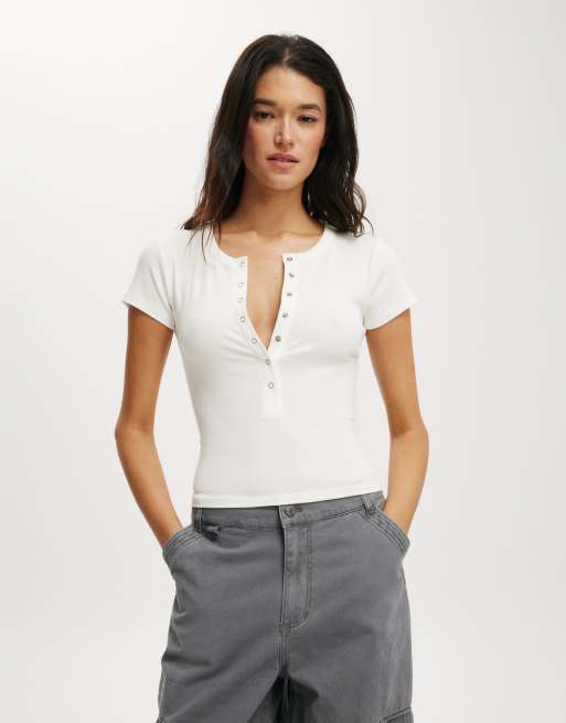 Cotton On – Christy – Henley-T-Shirt in Weiß