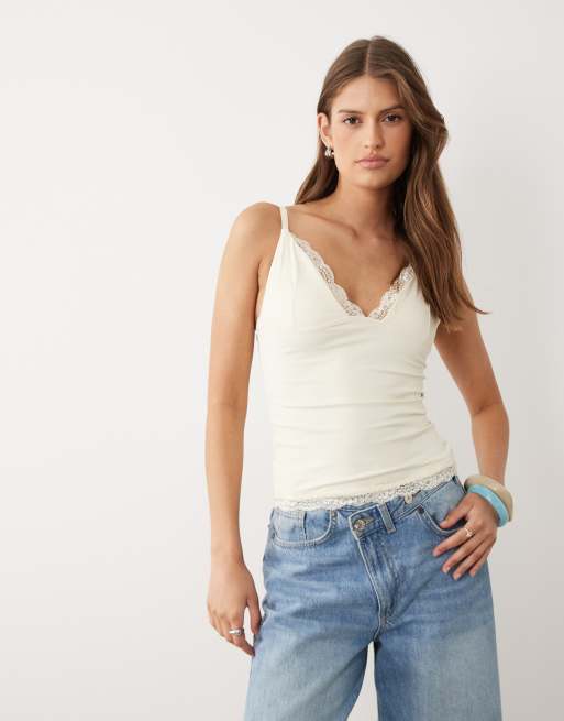 Cotton On – Hold Me – Camisole in Honig-Cremeweiß mit Spitzenborte