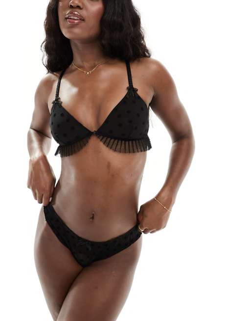 Cotton On – Longline-Triangel-Bustier aus Netzstoff mit beflocktem Gänseblümchenmuster
