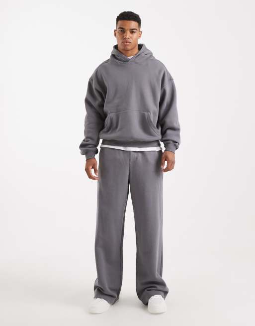 Cotton On – Set in Schieferstein, bestehend aus superweiter Trainingshose und Kapuzenpullover