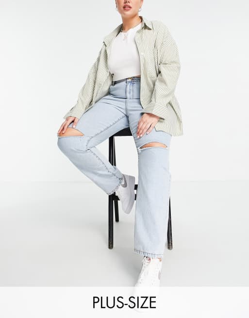 Cotton On Curve – Dad-Jeans mit Knierissen in Blau