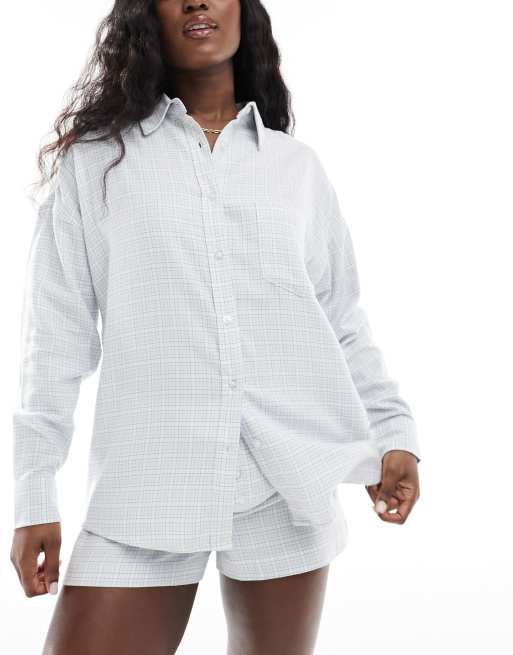 Cotton On – Kariertes Oversize-Pyjama-Hemd aus Flanell in Pannacotta