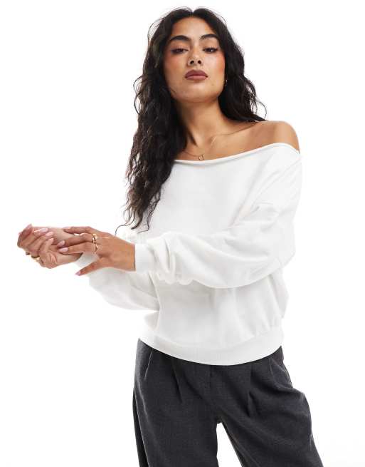 Cotton On – Klassisches schulterfreies Fleece-Sweatshirt in Weiß