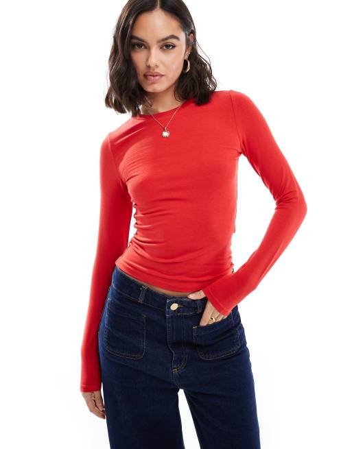 Cotton On – Langärmliges Oberteil in Rot mit Rundhalsausschnitt
