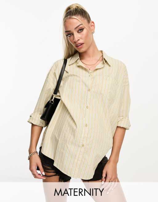 Cotton On Maternity – Dad-Hemd in gestreiftem Beige, Umstandsmode