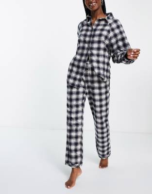 Cotton On – Pyjamahemd in Marineblau kariert, Kombiteil