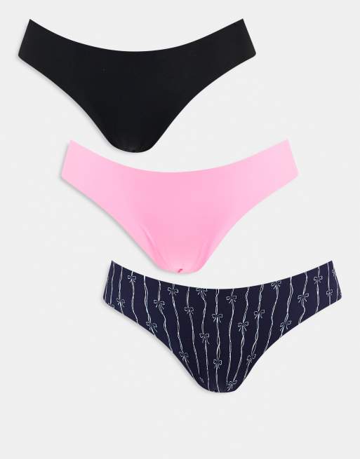 Cotton On – The Invisible – 3er-Pack knappe, sich nicht abzeichnende Slips in Rosa, Schwarz und mit Schleifenmuster