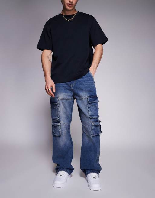 Courtside – Ultrabaggy Jeans in blauer Stone-Waschung mit Taschen-Detail