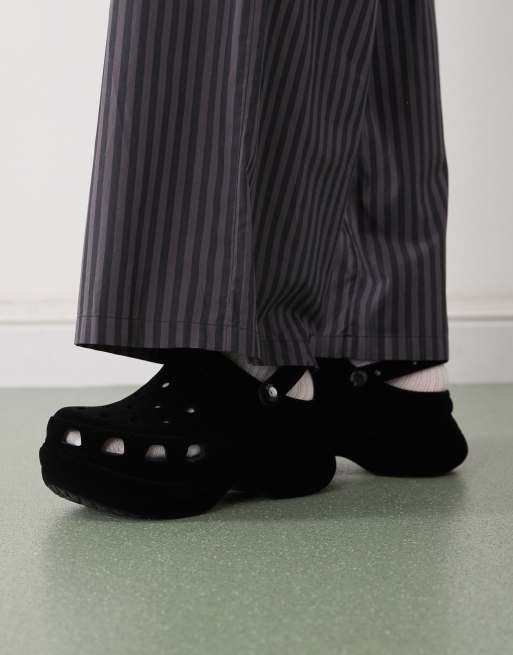 Crocs – Bae – Samt-Clogs in Schwarz mit Plateausohle
