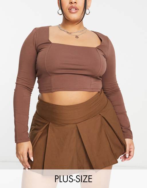 Daisy Street Plus – Brauner Mini-Skort im Stil der 2000er in A-Linie mit Zierfalten