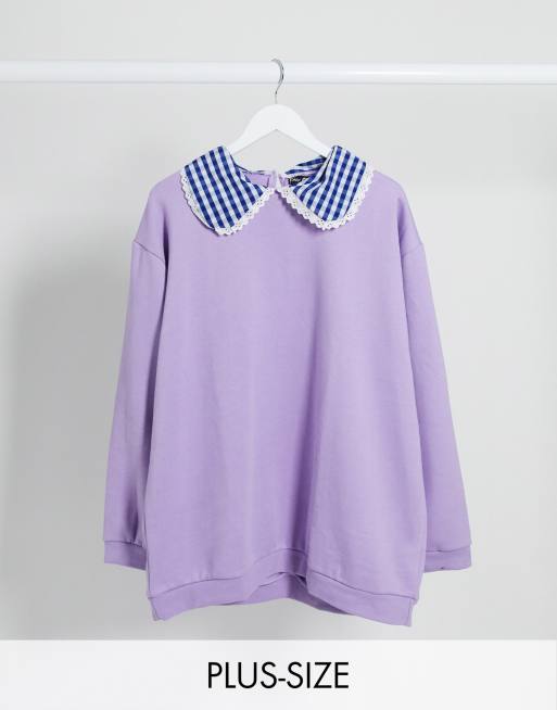 Daisy Street Plus – Oversize-Sweatshirt mit kariertem Kragen