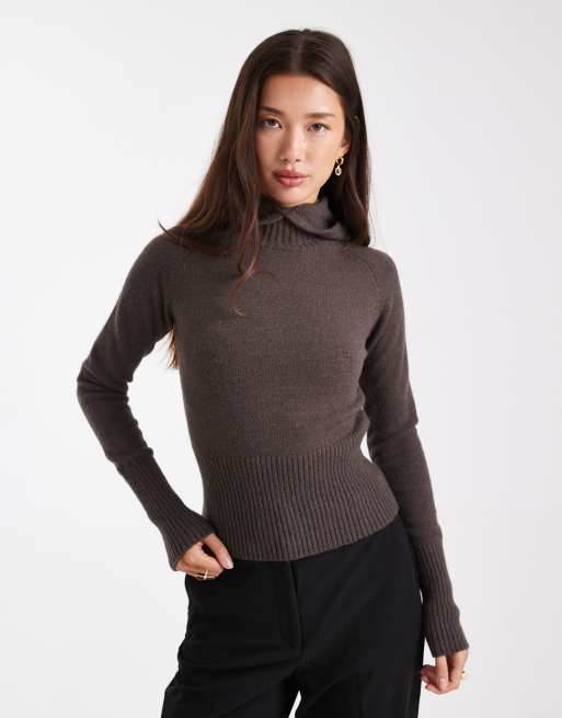 Daisy Street – Figurbetontes Strickoberteil in Braun mit Kapuze