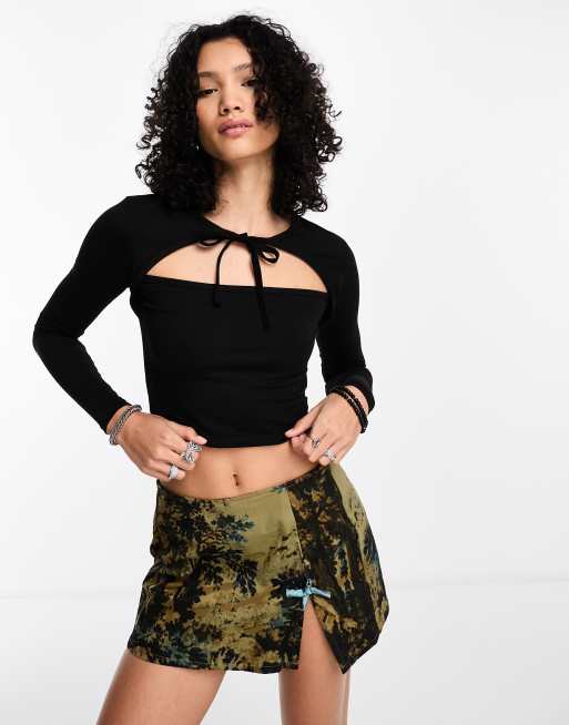 Daisy Street – Kurzes, figurbetontes Oberteil in Schwarz mit geschnürten Bolero-Ärmeln