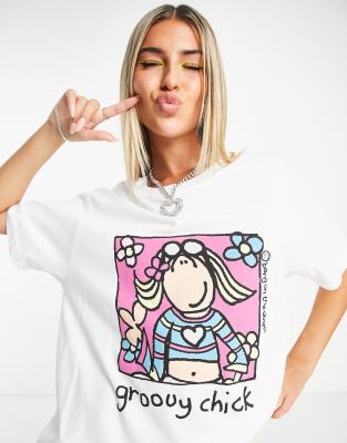 Daisy Street – Oversize-T-Shirt in Weiß mit Groovy Chic Grafik