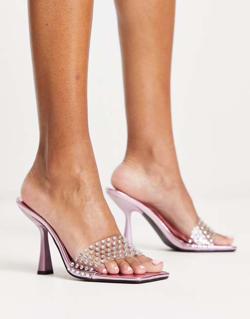 Tammy Girl – Verzierte Sandaletten in Rosa mit mittelhohem Absatz