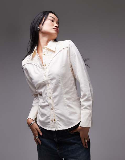 ASOS DESIGN – Popeline-Hemd in Pflaume ohne Kragen mit betonter Taille