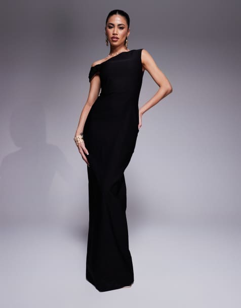 ASOS DESIGN – Netzstoff-Maxikleid in Schwarz mit One-Shoulder-Träger