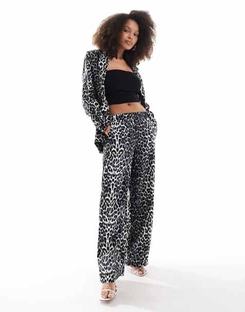 MIX & MATCHMango – Elegante Baumwollmix-Hose mit weitem Bein und Zebramuster, Kombiteil