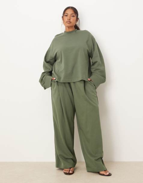 ASOS DESIGN Curve – Set in Khaki mit Waffelstruktur