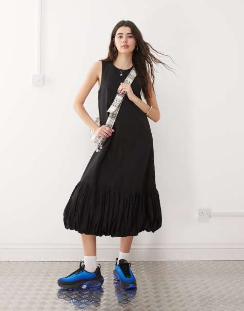 Erfahre mehr darüber, wie diese Produkte in der Rangliste platziert werdenMiss Selfridge – Angerautes, geripptes Hängerkleid in Schwarz mit tiefer Taille