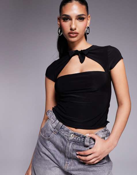 - Oberteile für Damen mit Zierausschnitt in Schwarz