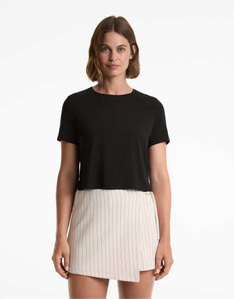 Oysho – Kurzärmliges Cropped-T-Shirt aus Lyocell-Mix in Schwarz