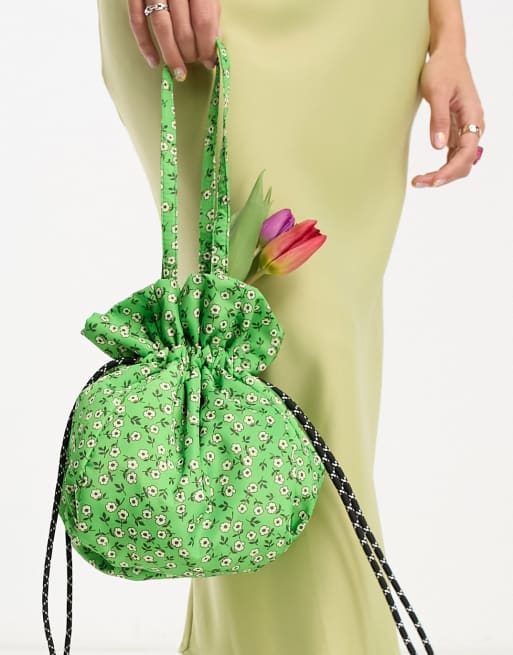 Damson Madder – Exklusive Handtasche mit Kordelzug in Grün mit Blümchenmuster