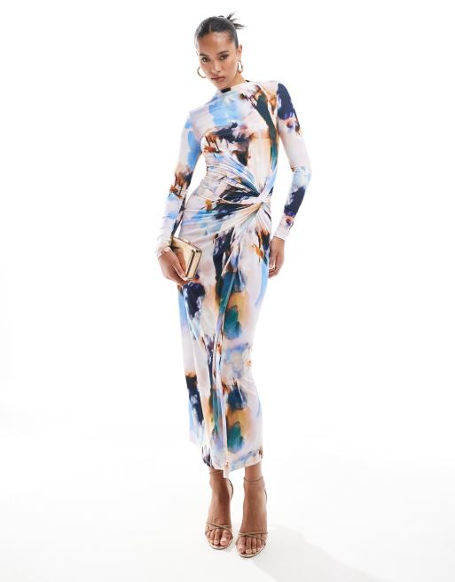 Daska – Exklusives, hochgeschlossenes Maxikleid mit Muster