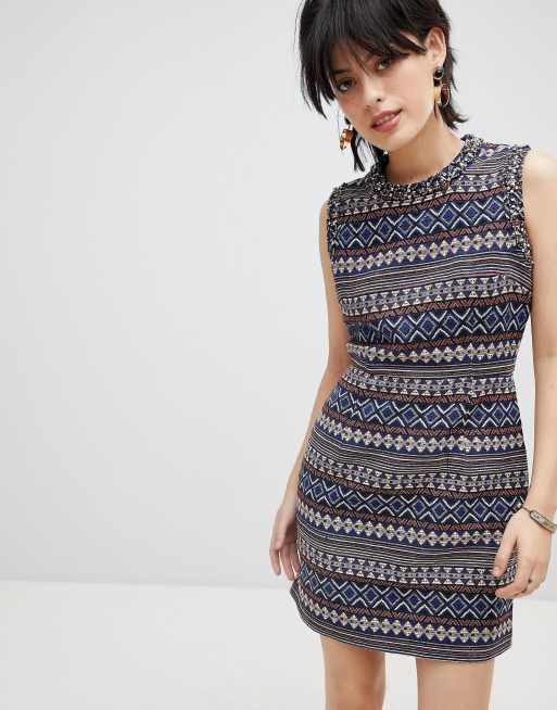 Deby Debo – Iliana – Gemustertes Kleid mit verziertem Ausschnitt