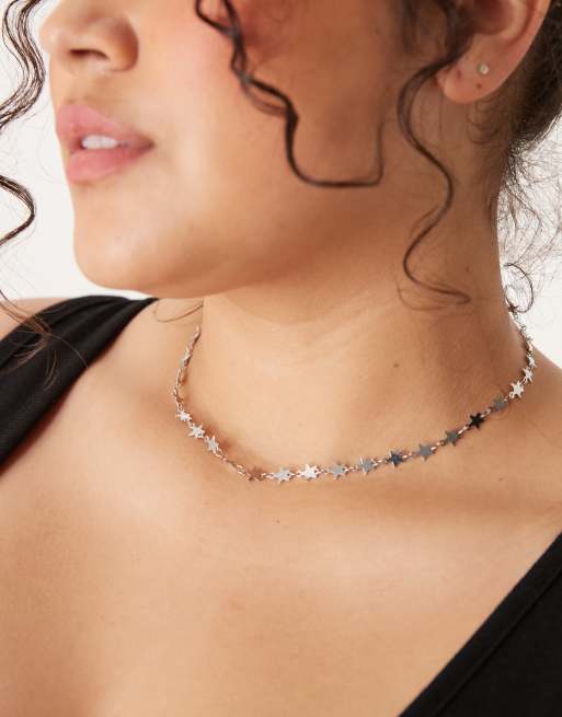DesignB London Curve – Choker-Halskette in Silber mit kleinen Sterngliedern